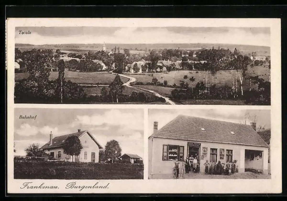AK Frankenau /Burgenland, Gemischtwarenhandlung u. Bäckerei Johann Piertsak, Ortspanorama