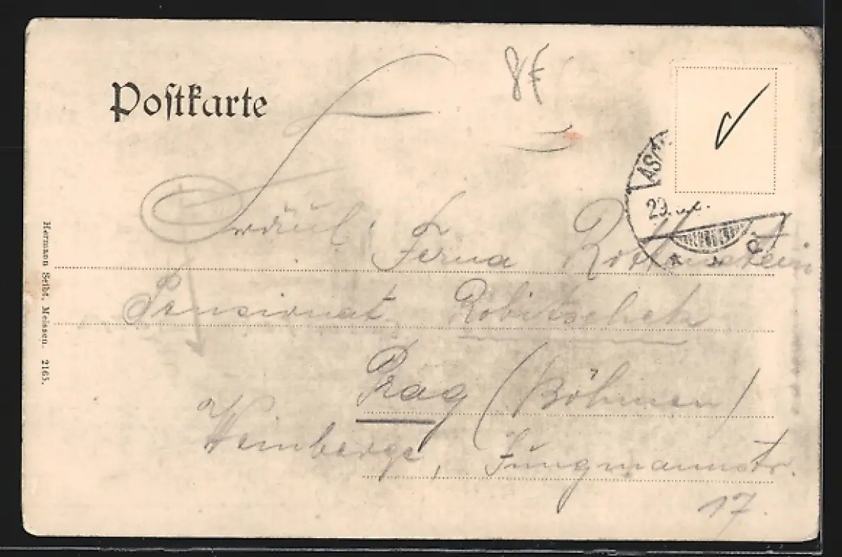 alte Ansichtskarte, gelaufen, Briefmarke entfernt, guter Zustand