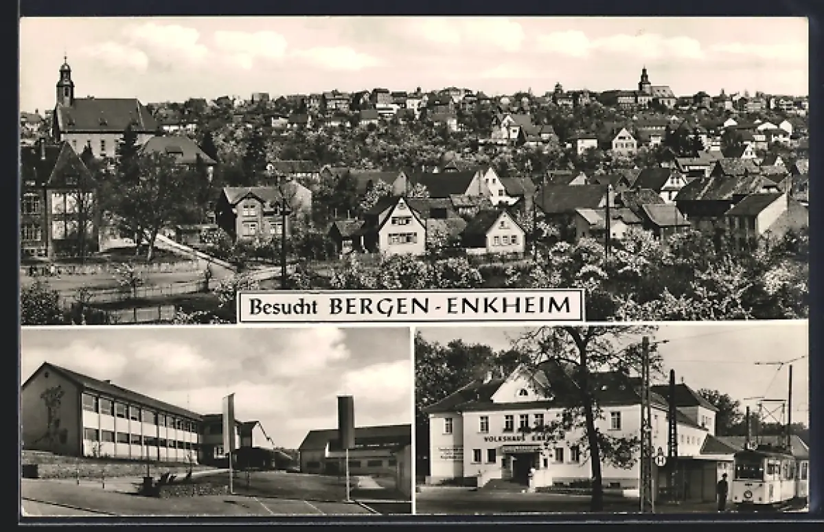 AK Frankfurt-Bergen-Enkheim, Gaststätte Volkshaus Enkheim, Ortspartie, Teilansicht