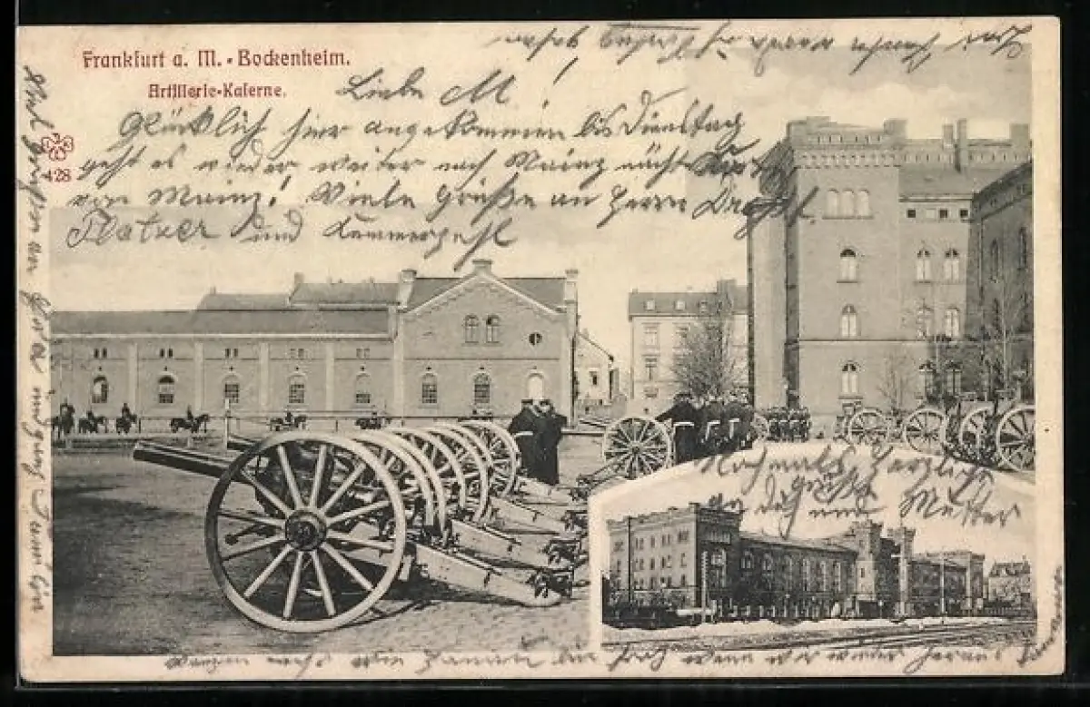 AK Frankfurt-Bockenheim, Artillerie-Kaserne mit Strassenpartie