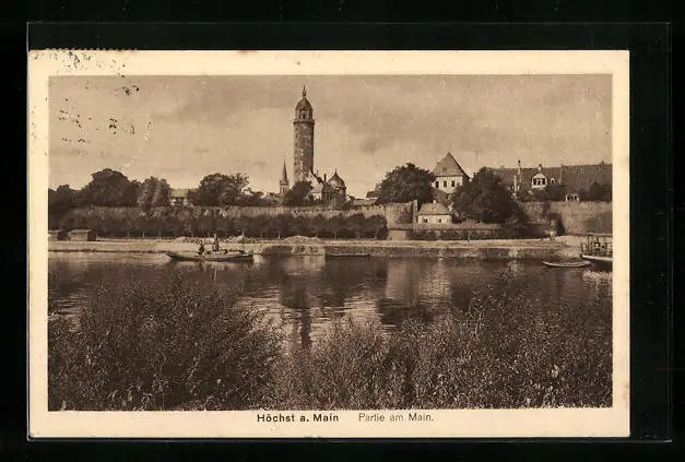AK Frankfurt-Höchst, Partie am Main mit Dampfboot