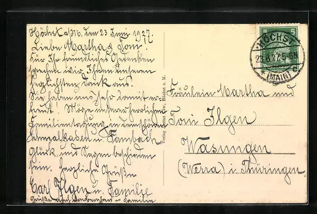 alte Ansichtskarte, gelaufen 1927, Stempelspur, guter Zustand