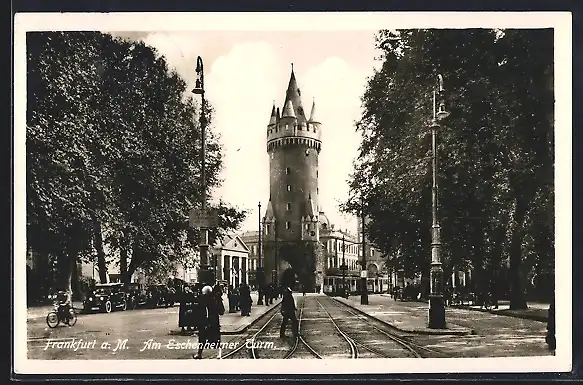 AK Frankfurt /Main, Am Eschenheimer Turm mit Strassenbahn