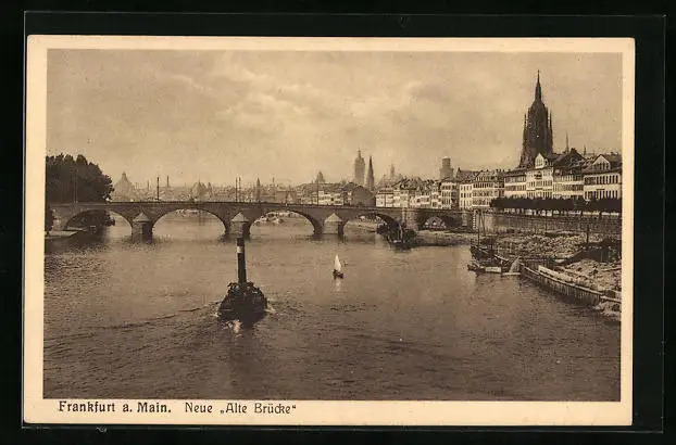 AK Frankfurt / Main, Blick aif die Neue Alte Brücke