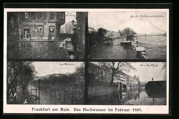 AK Frankfurt /Main, Hochwasser 1909, Zollhof, Untermainbrücke