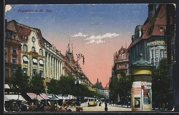 AK Frankfurt /Main, Zeil-Strasse mit Litfasssäule und Strassenbahn