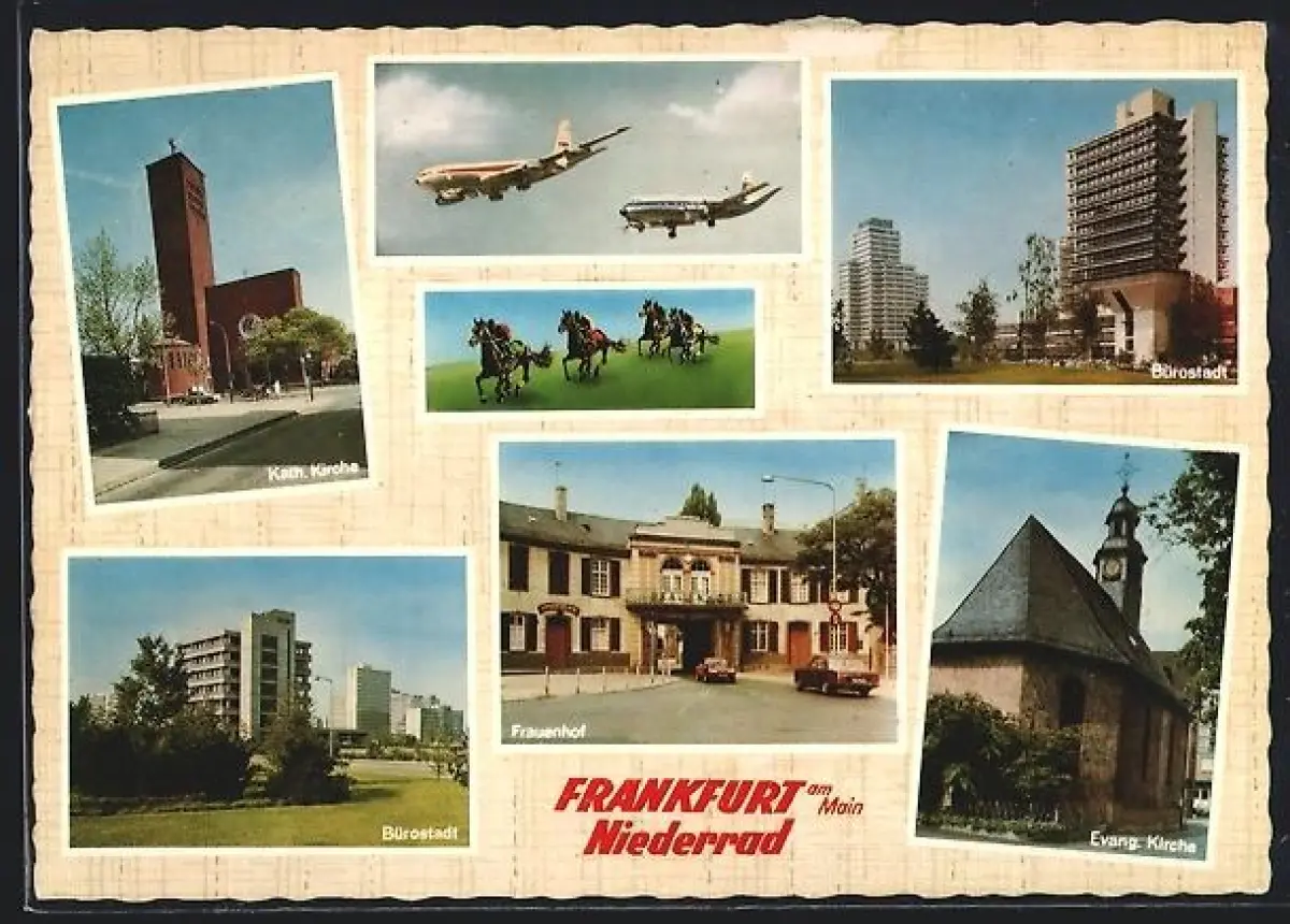 AK Frankfurt-Niederrad, Bürostadt, Frauenhof, Kath. Kirche, Evang. Kirche
