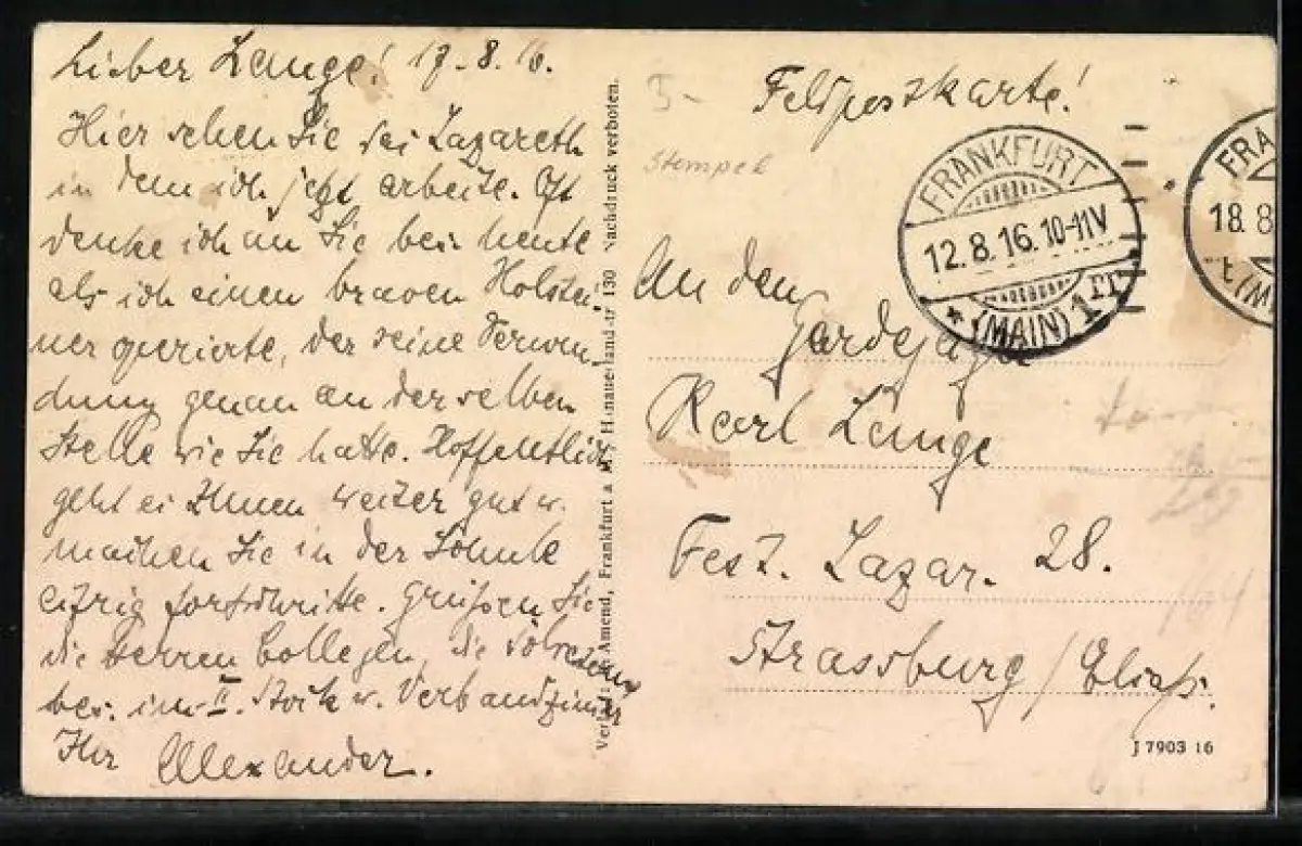 alte Ansichtskarte, gelaufen 1916, Eckknick re. oben, guter Zustand