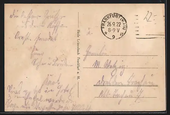 alte Ansichtskarte, gelaufen 1922, Stempelspur, Briefmarke entfernt, guter Zustand