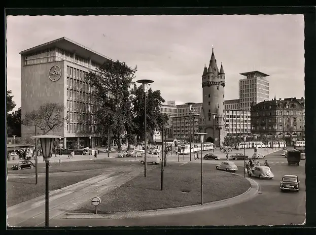 AK Frankfurt a. M., Eschenheimer Turm mit Hauptpost