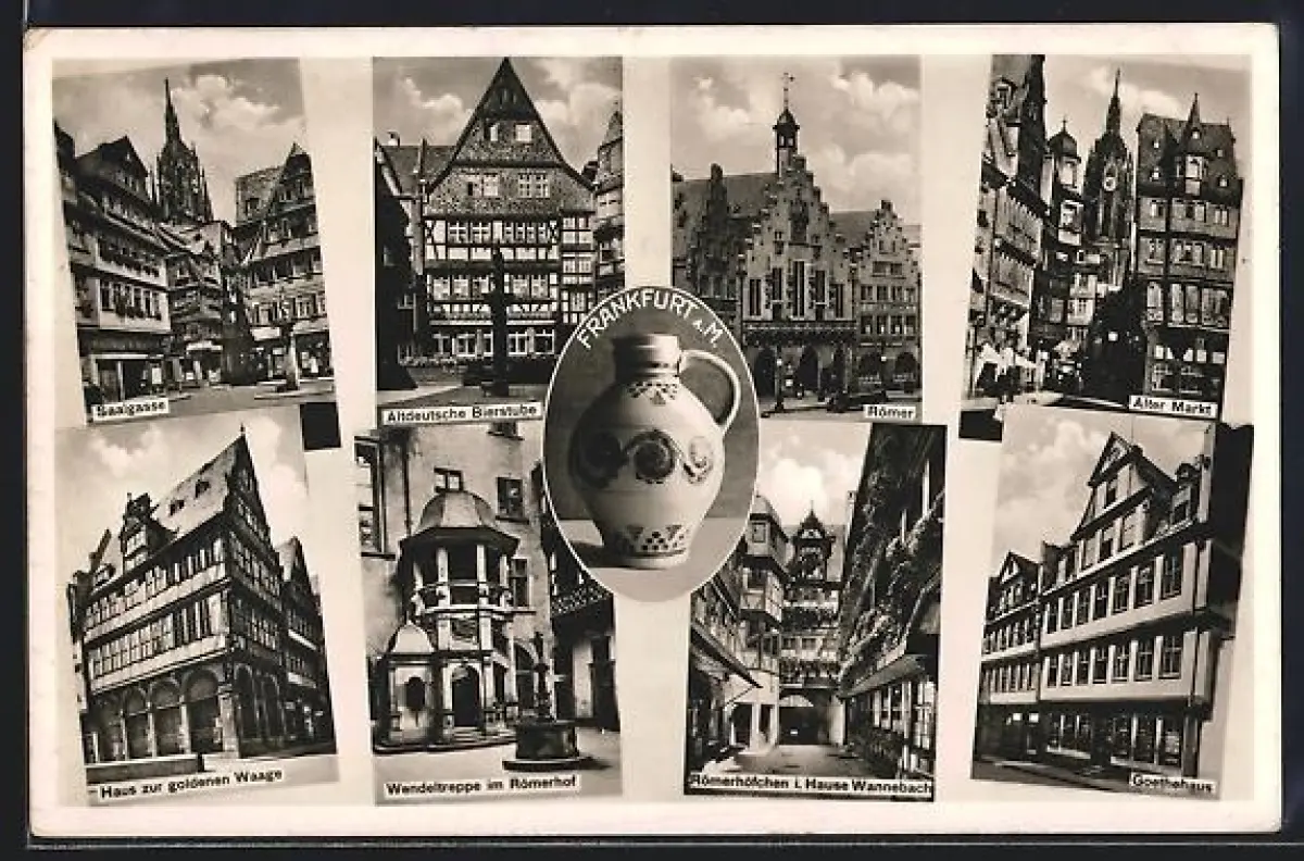 AK Frankfurt a. M., Gasthaus Altdeutsche Bierstube, Saalgasse, Alter Markt, Äppelwoikrug