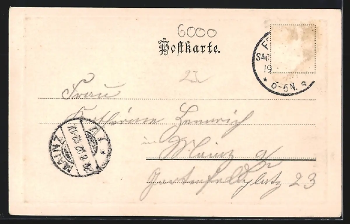 alte Ansichtskarte, gelaufen, Briefmarke entfernt, guter Zustand