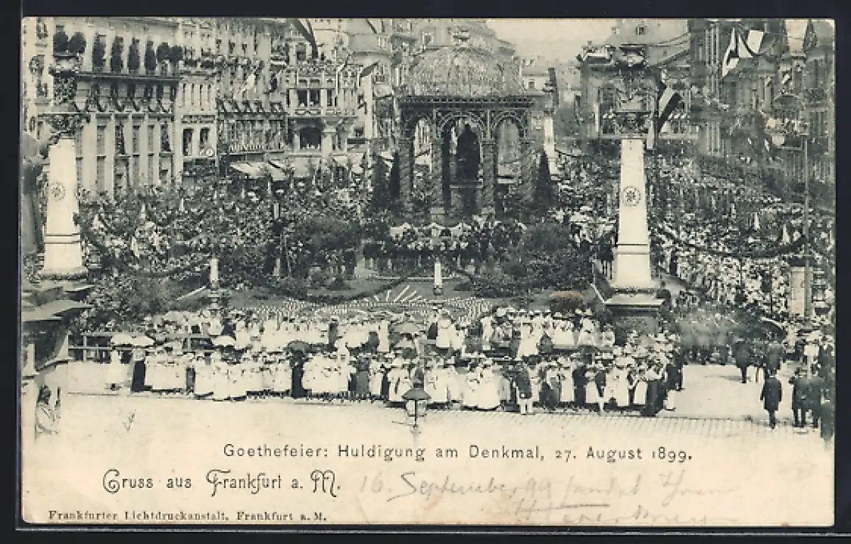AK Frankfurt a. M., Goethefeier, Huldigung am Goethe-Denkmal 1899