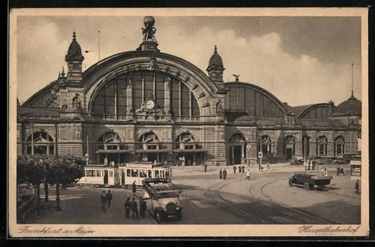 AK Frankfurt a. M., Hauptbahnhof mit Autobus und Strassenbahn