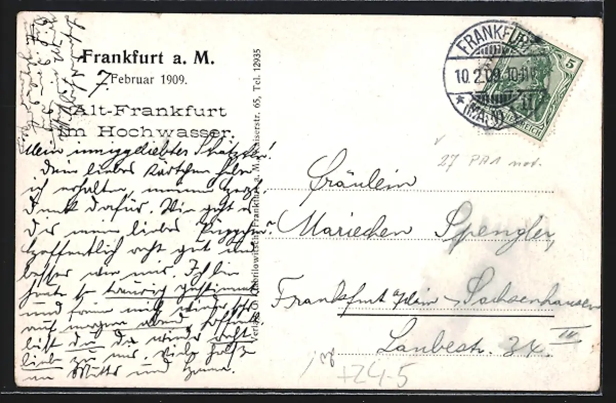 AK Frankfurt a. M., Hochwasser 1909, Alt-Frankfurt im Hochwasser