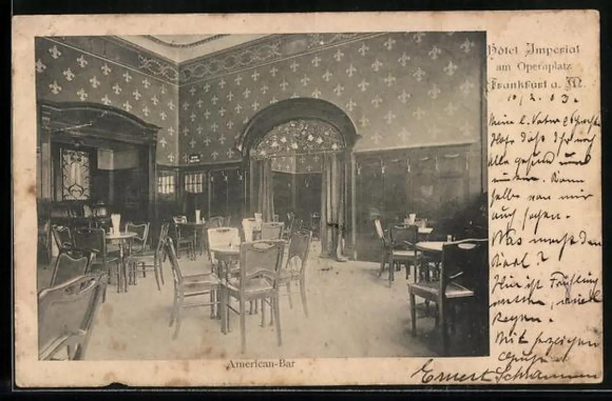 AK Frankfurt a. M., Hotel Imperial am Opernplatz, American-Bar, Innenansicht