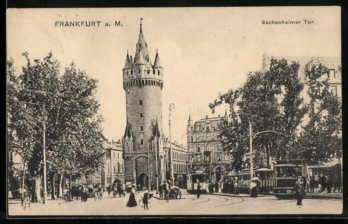 AK Frankfurt a. M., Partie am Eschenheimer Thor mit Strassenbahnen
