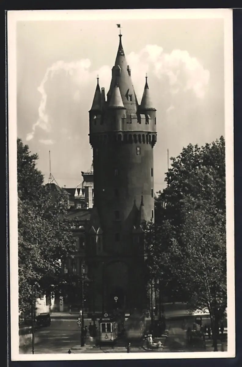 AK Frankfurt a. M., Strassenbahn vor dem Eschenheimer Turm
