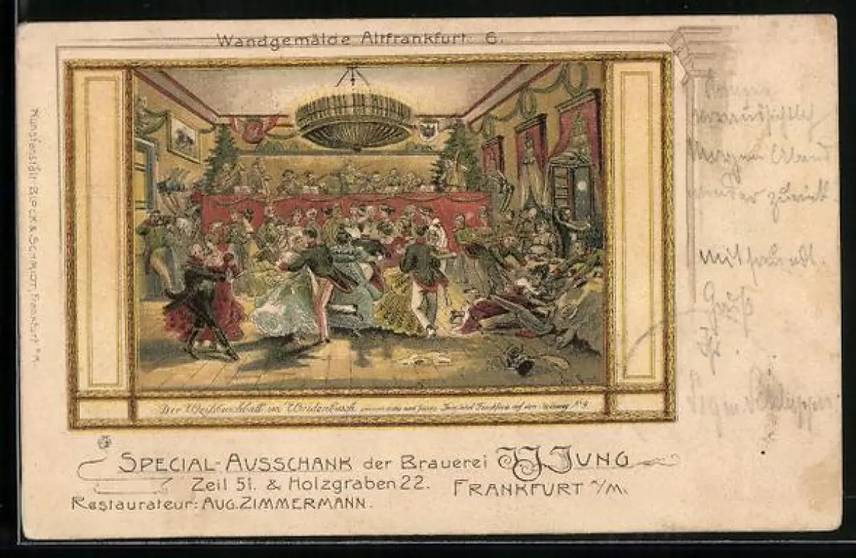AK Frankfurt a. M., Wandgemälde Alt-Frankfurt-Der Weissbuschball im Weidenbusch