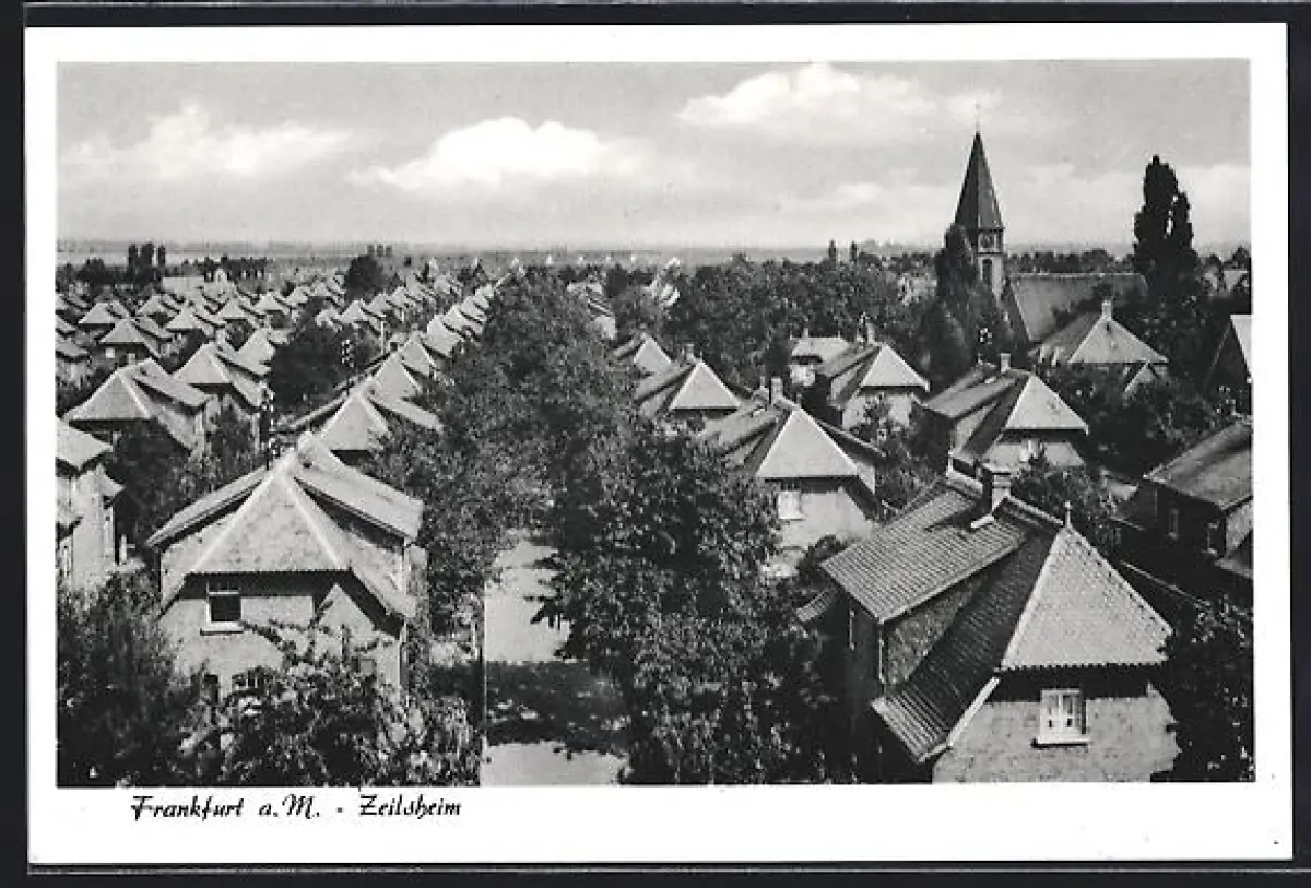 AK Frankfurt a. M.-Zeilsheim, Teilansicht mit Kirche und Strassenpartie