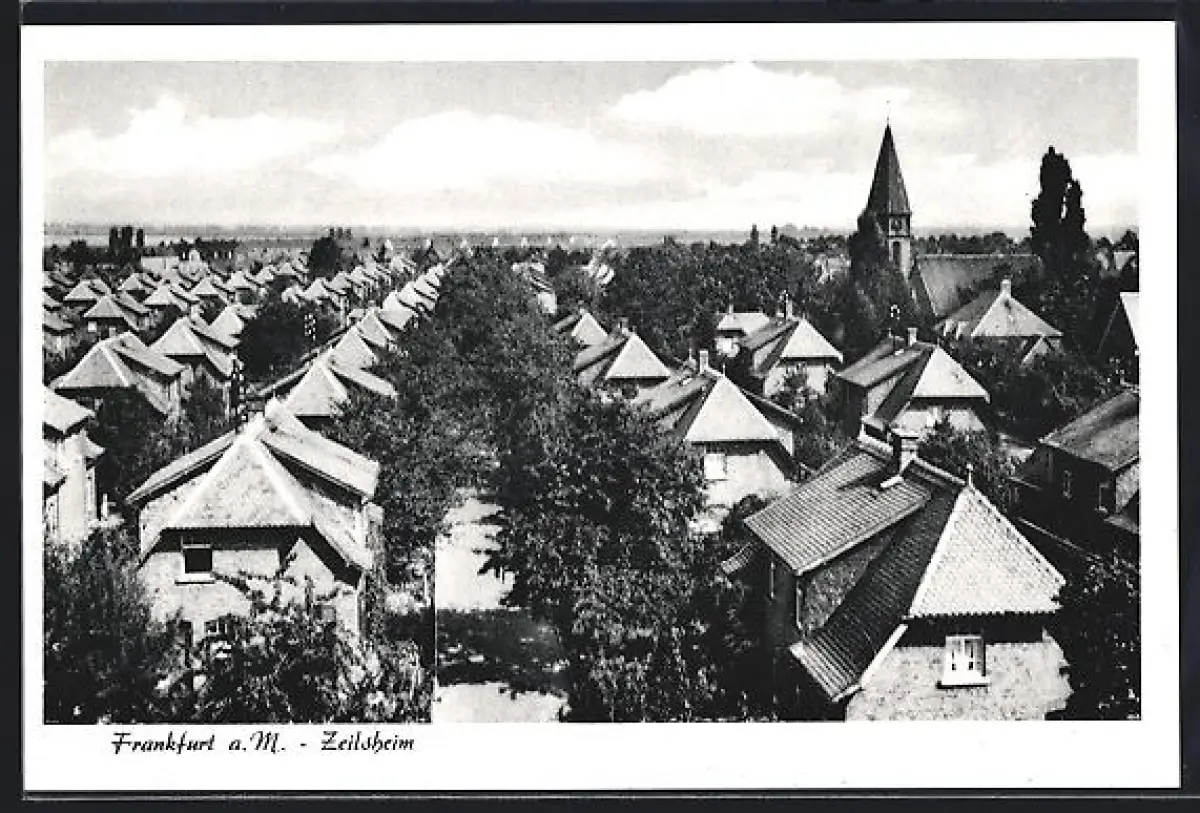AK Frankfurt a. M.-Zeilsheim, Teilansicht mit Kirche und Strassenpartie