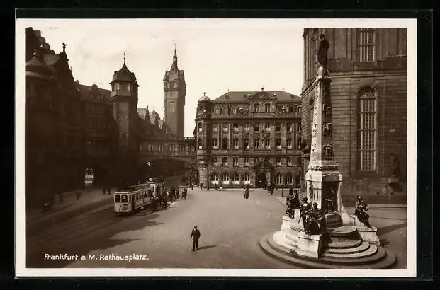 AK Frankfurt a. Main, Der Rathausplatz mit Strassenbahn