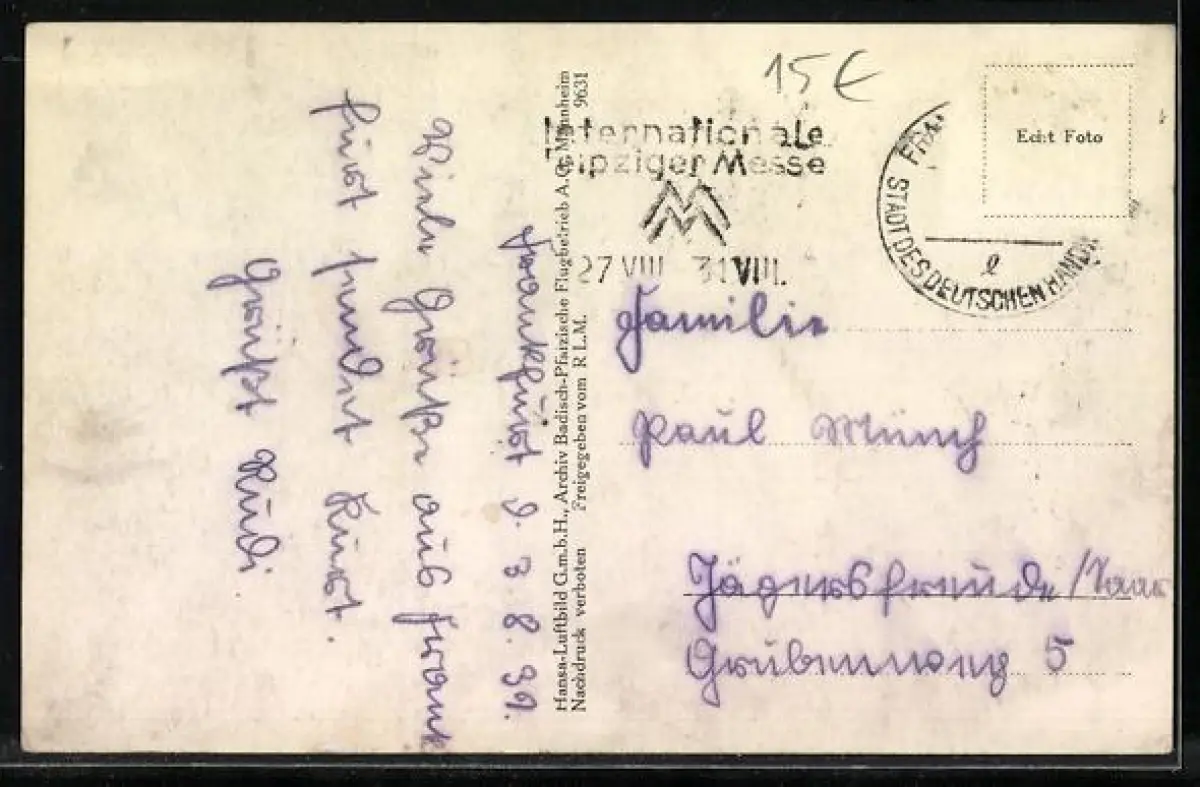 alte Ansichtskarte, gelaufen 1939, Briefmarke entfernt, guter Zustand