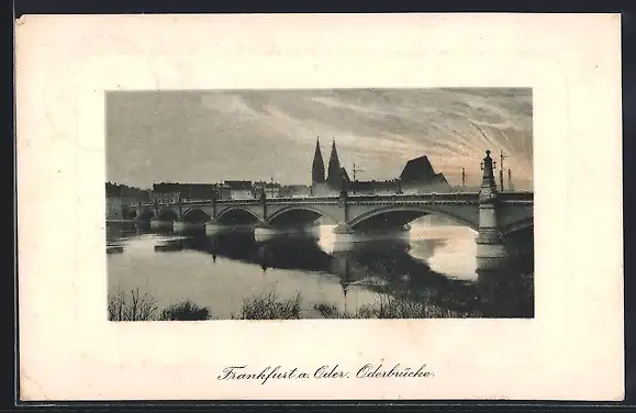 AK Frankfurt a. Oder, Oderbrücke am Abend