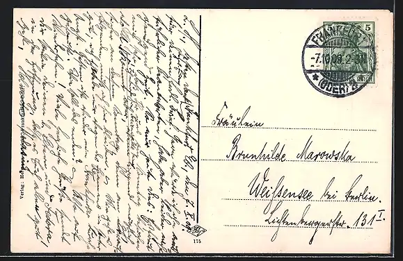 gelaufen 1909, Eckknick li. unten, guter Zustand