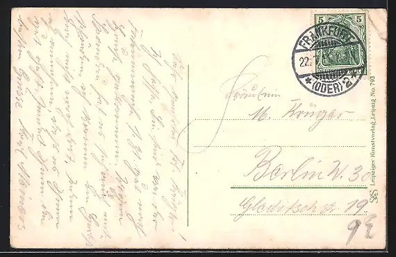 gelaufen 1911, Eckknicke li. oben, guter Zustand