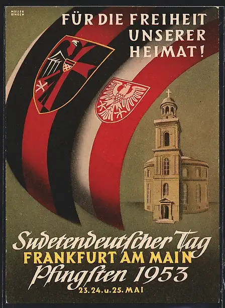 AK Frankfurt am Main, Sudetendeutscher Tag Pfingsten 1953, Fahnen, Heiligenhof in Bad Kissingen