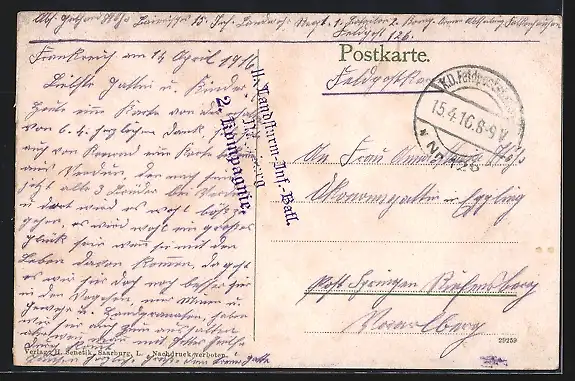 alte Ansichtskarte, gelaufen 1916, guter Zustand