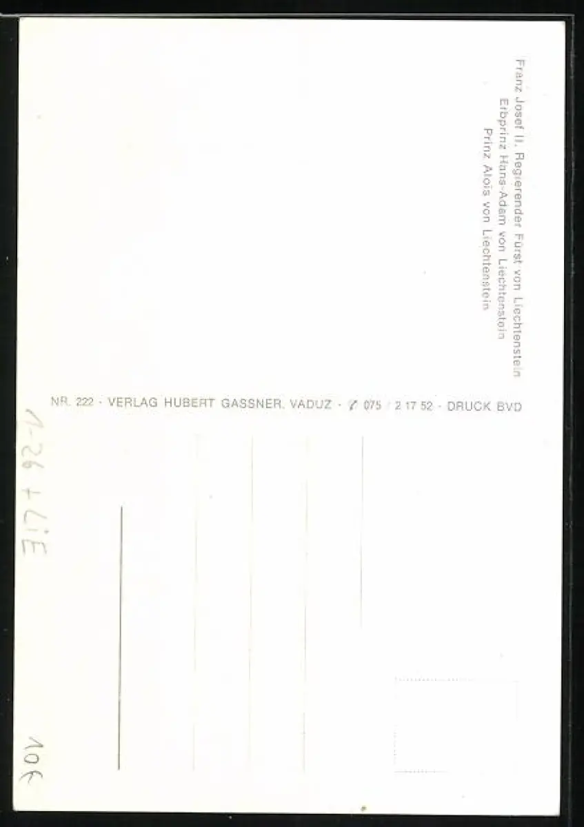 AK Franz Josef II., Regierender Fürst von Liechtenstein, Erbprinz Hans-Adam von Liechtenstein und Prinz Alois