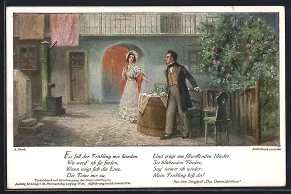 AK Franz Schubert, Das Dreimäderlhaus, Frau mit weissem Kleid