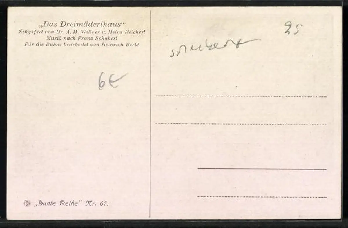 AK Franz Schubert, Das Dreimäderlhaus, Schubert verlässt den Tisch