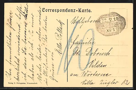 alte Ansichtskarte, gelaufen 1910, guter Zustand