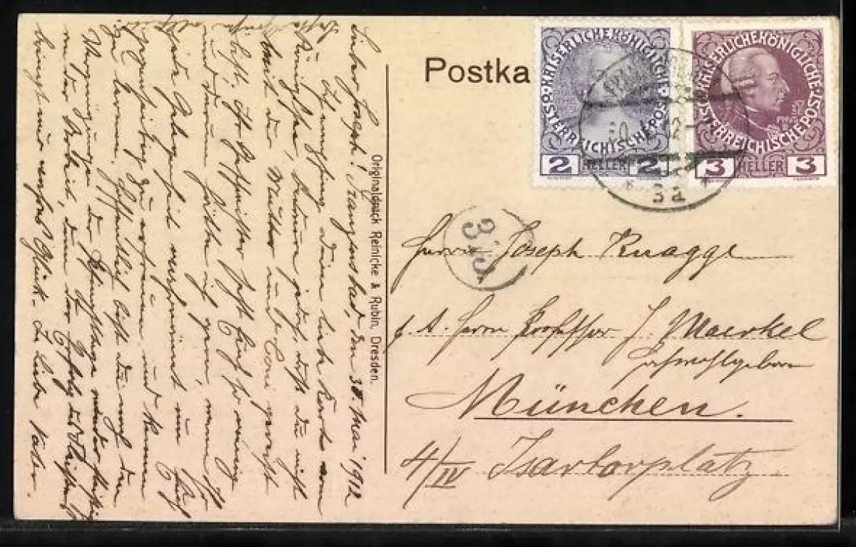 alte Ansichtskarte, gelaufen 1912, Stempelspur, kleiner Eckknick rechts oben, guter Zustand