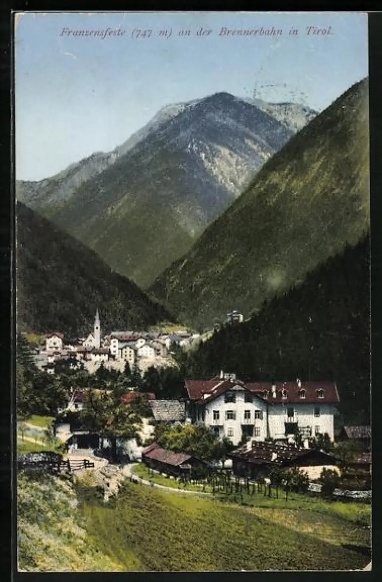 AK Franzensfeste, Blick über Ort mit Kirche, Brennerbahn