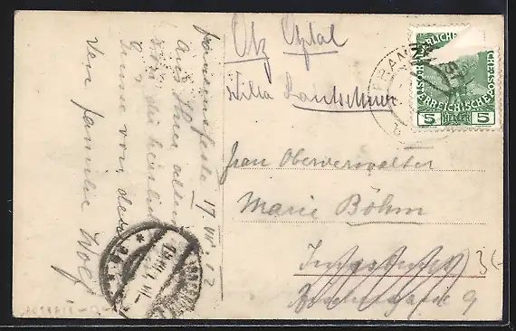alte Ansichtskarte, gelaufen, Briefmarke entfernt, rückseitig Oberflächenschaden, Eckknick unten re., guter Zustand