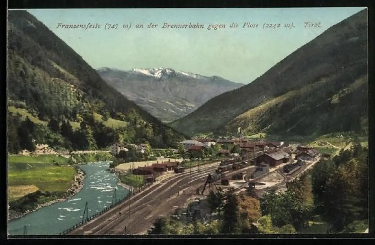 AK Franzensfeste, Gesamtansicht mit Bahnhof und Plose