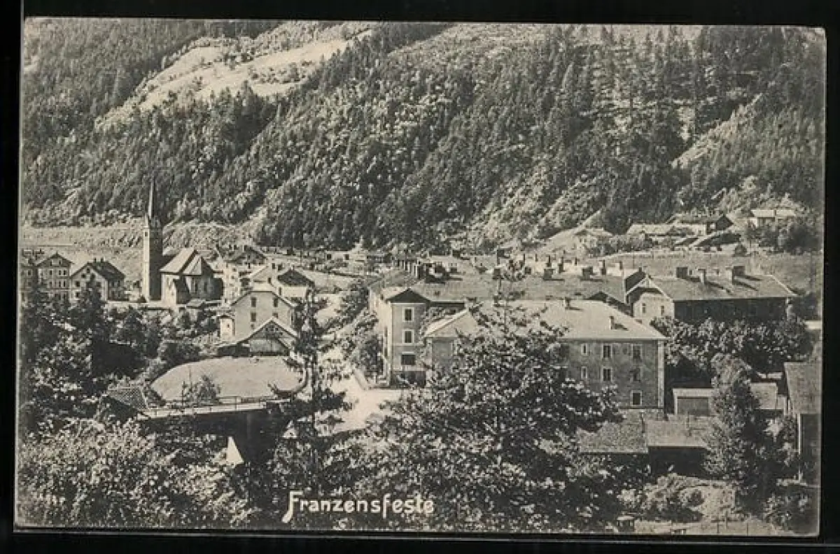 AK Franzensfeste, Strassenpartie mit Kirche