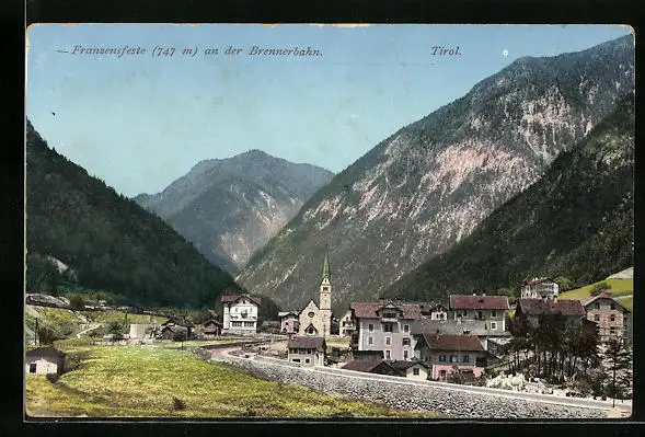 AK Franzensfeste an der Brennerbahn, Ortspartie mit Kirche