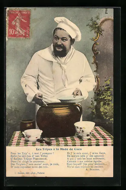 AK Französischer Koch mit einem Topf Trip à la mode de Caen