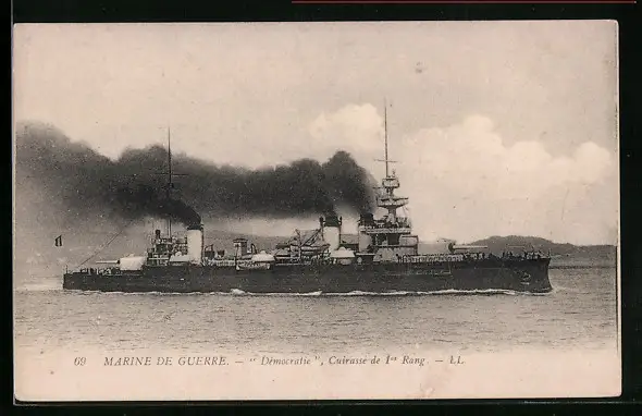 AK Französisches Kriegsschiff Democratie unter Volldampf