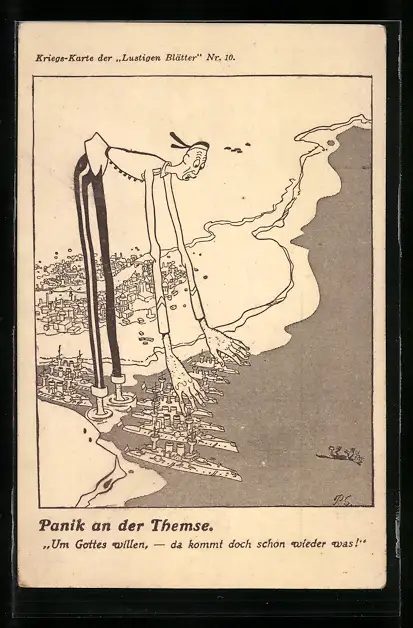AK Franzose versucht Kriegsschiffe zu stoppen, Propaganda 1. Weltkrieg