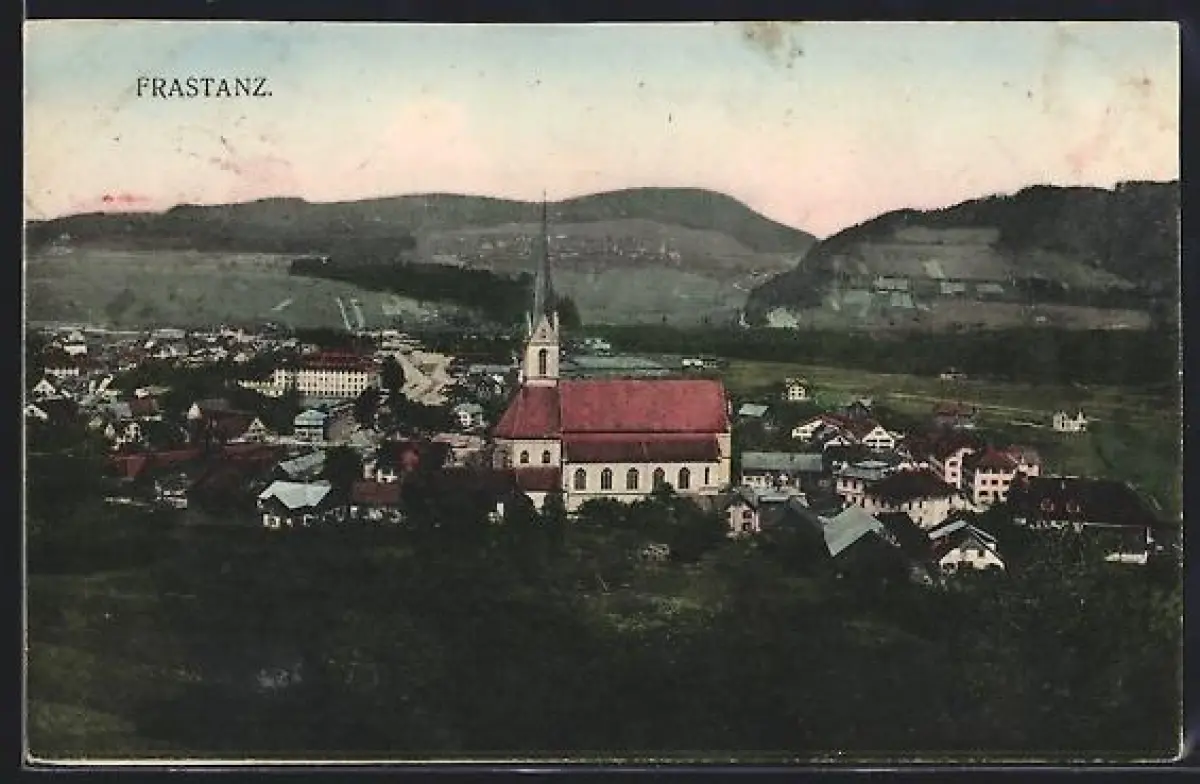 AK Frastanz, Teilansicht des Ortes mit Kirche und Umgebung