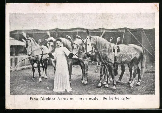 AK Frau Direktor Aeros mit ihren echten Berberhengsten im Zirkus