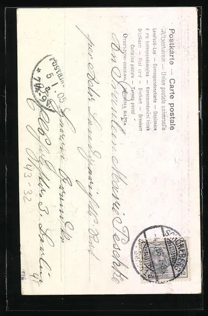 alte Ansichtskarte, gelaufen 1905, Eckknick re. unten, guter Zustand