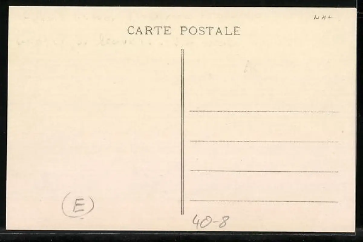 Personenbezogene Daten auf der Rückseite der Karte wurden durch blauen Textmarker unkenntlich gemacht. Die blauen Stellen sind auf die Vorderseite durchgeweicht und wirken sich negativ auf das Postkartenfoto aus
