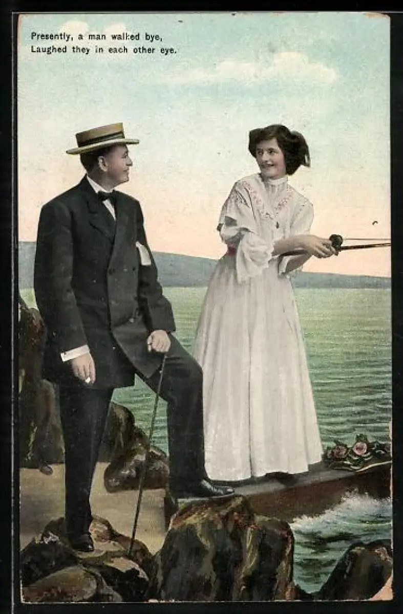 AK Frau beim Angeln mit elegantem Herrn